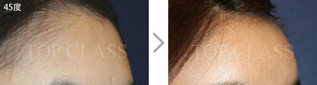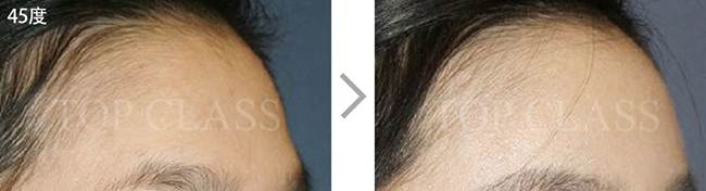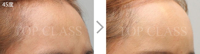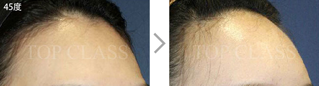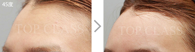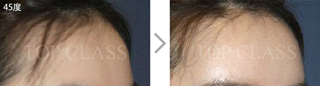 额头毫无立体感和曲线美,会使面部整体看起来宽阔。完成整体的曲线,打造立体的额头。