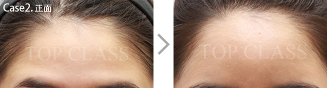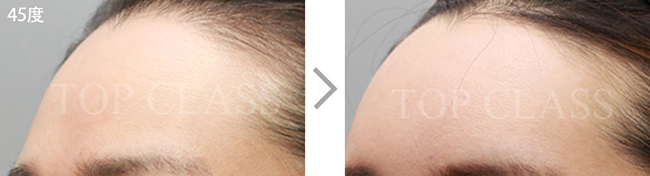比实际看起来宽的额头型,比起眉毛上侧额头上侧部位要更略扩的稍厚,使额头看起来不显宽,为自然地额头曲线而手术