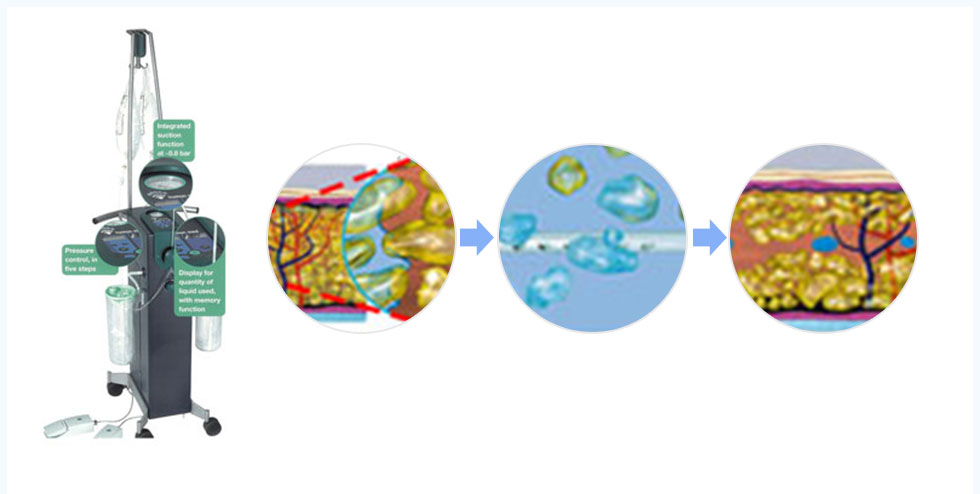 Water-Jet Liposuction is spraying anesthetics in the form of water-jet to remove fat and anesthetics at the same time.