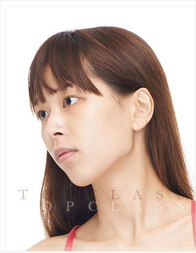 • In case of thick side jaw bone and large angle at the tip of the chin, sagittal splitting osteotomy is combined to optimize the front view of the face.