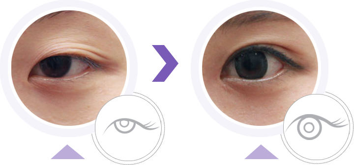 강화시켜 주면서 쌍꺼풀라인도 동시에 잡아 보다 세련되고 선명한 눈매를 완성시켜 줍니다.안검하수의 정도에 따라 절개 또는 비절개로 수술법이 달라지며,