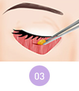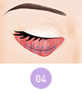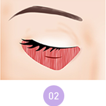 지방의 일부를 제거하고 지방을 싸고 있는 앞쪽의 격막을 팽팽하게 강화시켜 눈밑지방이 다시 밀고 나오지 않도록 해줍니다.