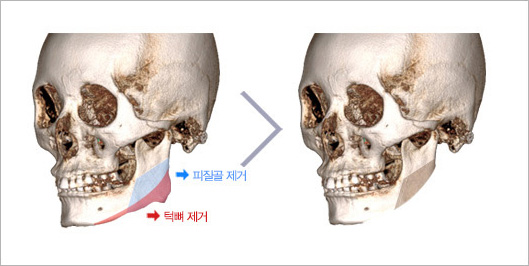 전체적으로 사각턱을 절제해주고 양 옆의 피질골도 제거해줍니다.
