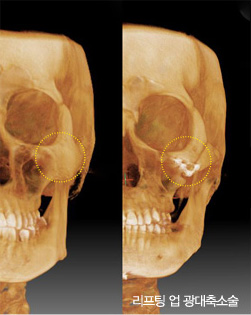 입체감을 주는 광대 축소를 위해서는 피부, 연부조직 근육을 올려주는 리프팅 테크닉과