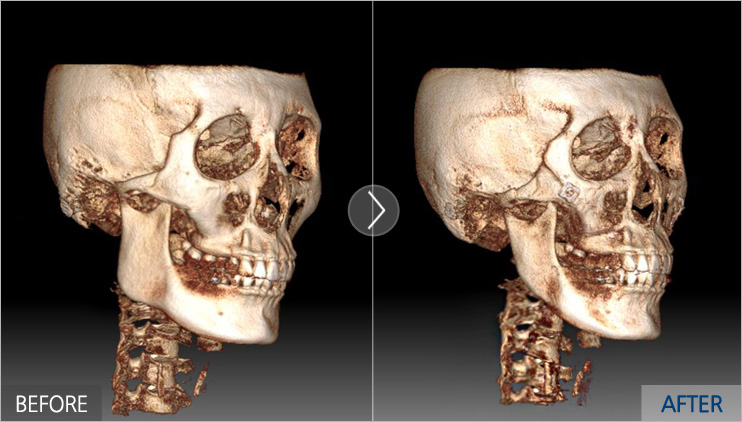 단순 축소술은 볼처짐 불유합, 밋밋함으로 인해 불만족스러운 결과가 생길 확률이 높습니다. 탑클래스성형외과에서는 앞광대 부분의 근육, 연부조직, 피부를 리프팅 시켜주고 중앙면부